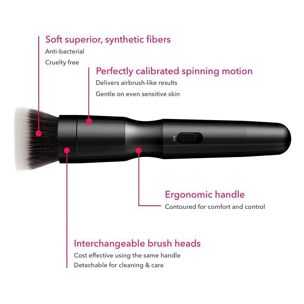 The Lunira Beauty Blendsmart Pro comes with three interchangeable brush heads for foundation, powder, and blush, allowing you to easily switch between products and get a complete makeup look with just one tool.